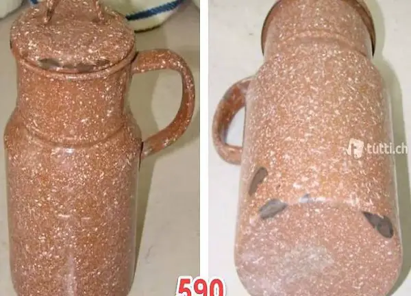 Milchkanne Milchkessi, mit einem Griff, braun gesprenkelt.