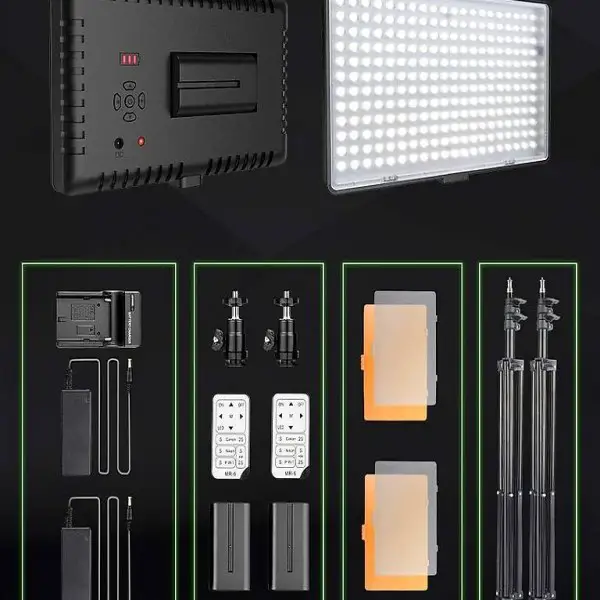 Was Sie erhalten: 2 × Light Panel + 2 × Light Stand + 2 × Transparent Filter + 2 × Orange Filter + 1 × Ladegerät + 2 × Batterien + 1 × Tragetasche + 2 × Blitzschuh Adapter + 2 × Fernbedienung + 1 × Handbuch. Das Produkt wurde vor dem Versand problemlos getestet