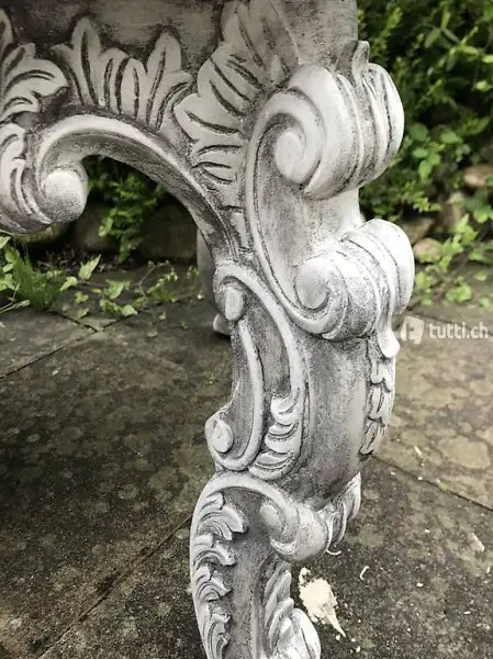 Dieser antike grosse Barock Salontisch aus robustem Massivholz habe ich mit umweltfreundlicher Kalkfarbe umgestaltet und versiegelt (Tischplatte lackiert). Der Tisch ist von einwandfreier Qualität.