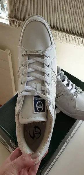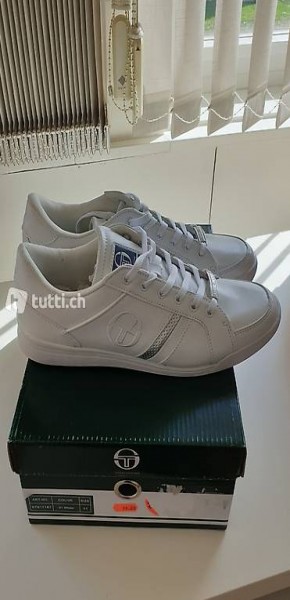 Sportliche, neue Sergio Tacchini Schuhe in der Farbe white mit chrome. Super geeignet für die sonnige Jahreszeit. Wir verkaufen diesen