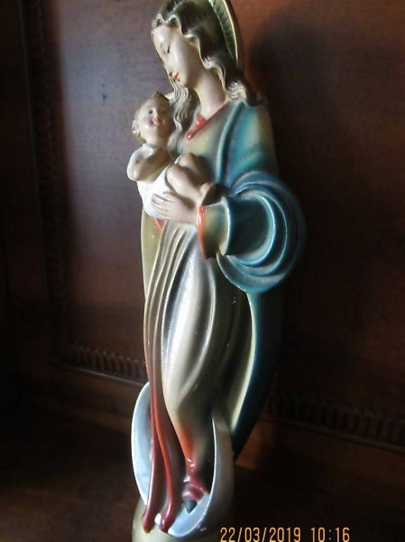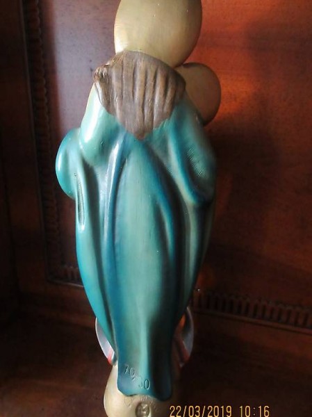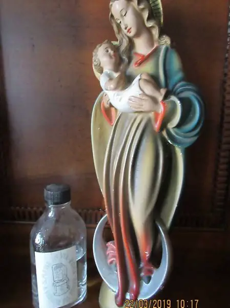 gratis dazu das Weihwasser von ROM, siehe Bild 3 , die Maria Statue wurde auch in Rom gesegnet, Signatur Punze kann ich nicht entziffern, einzig dass sie aus Deutschland stammt , vielleicht kann mich ja jemand informieren,