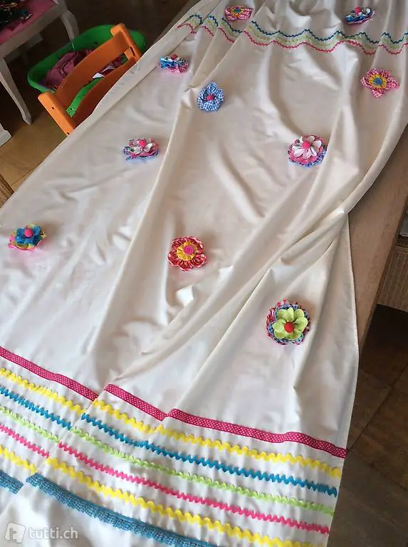 Zimmer. Selbergemacht, allein das applizierte Material kostete über 100 Franken, und dann noch die Handarbeit ... Alle Blumen sind mit einem von Hand aufgenähten Druckknopf befestigt und können / sollten zum Waschen abgenommenwerden