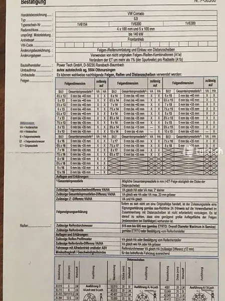 Neues unbeschriebenes DTC Gutachten zu allen 3 Corrado Modellen für fast alle Powertech Distanzscheiben