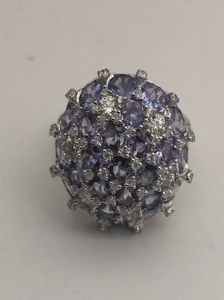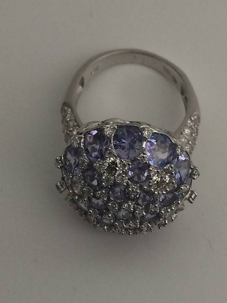 Zu verkaufen wunderschönes Collier und passender Ring Weissgold 585, Collier mit total 31ct. Tansanittropfen und 32 Brillanten 0,6 ct, Ring mit 25 runden Tansaniten und zahlreichen Brillanten.