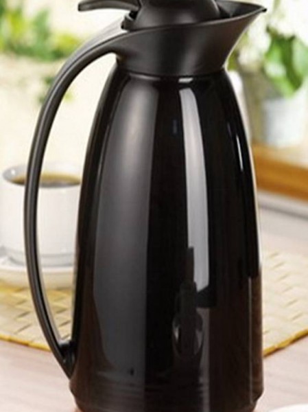 Isolierkanne mit Kunststoffmantel und Glaseinsatz. Dank praktischer Einhandbedienung eingach zu handhaben.