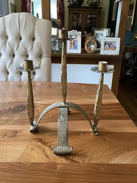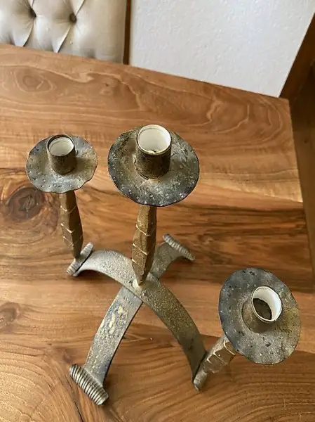aus Schmiedeisen und golden bemalt, Midcentury, Höhe 29 cm, Breite 29 cm,