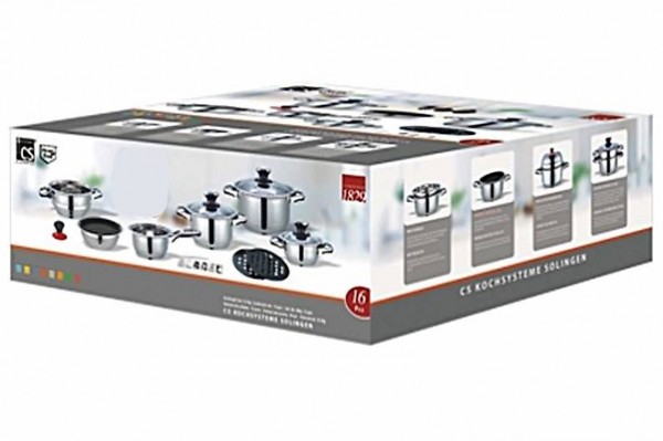 Topfset Aurich der Marke CS-Kochsysteme von Carl-Schmidt-Sohn gefertigt aus hochwertigem hochglanzpolierten Edelstahl und für alle gängigen Herdarten (also auch für Induktionsherde) beinhaltet alles was Sie zum Kochen und zubereiten von Speisen benötigen.