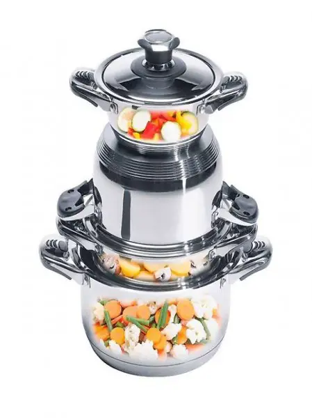 Ein multifunktionaler Dünsteinsatz, eine vielseitig verwendbare Schüssel mit Deckel, zwei