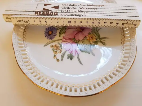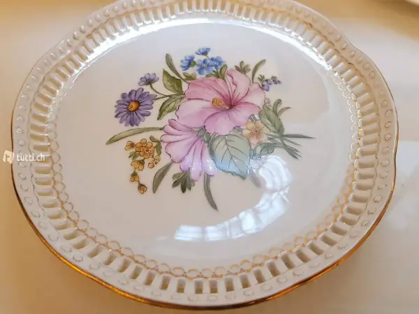 Antiker Teller, handbemalt mit Goldrand 21cm