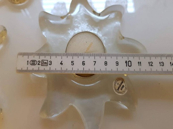 3 Stück Hergiswiler Glas Teelichter, Sonne, Blume, Stern