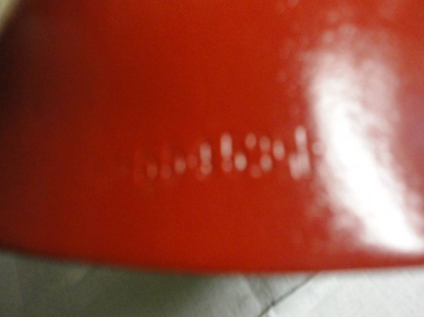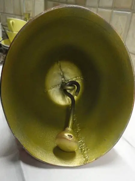 wir haben diese extra für den St. Nikolaus Besuch hergerichtet, aussen in schönem rot, und innen in Gold gespritzt, der Klang ist laut und sehr schön, Grösse 20, nummeriert 55453vorne und hinten von der Nummer ein Schweizer Kreuz, dann gestempelt, hat einen Kuhkopf und rund herum steht B.V. Glino Clino & Co Fabrikation kann ich leider nicht mehr lesen,