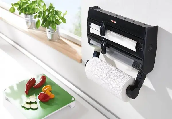 Griffbereite Ordnung - Der Folienspender bietet Platz für drei Rollen, sodass Frischhaltefolie, Alufolie sowie