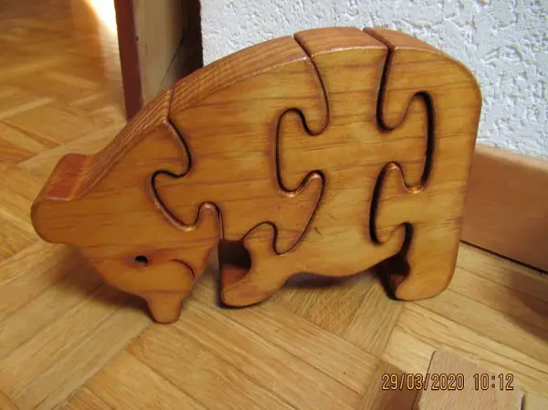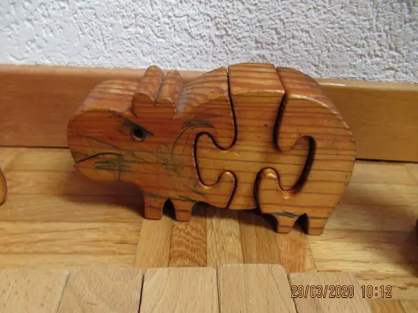 grosses Tierpuzzle, verstellbar, drehbar, Pferd, Hahn, Hund, Ente massive grosse Klötze, Fr 25.-verkauft,