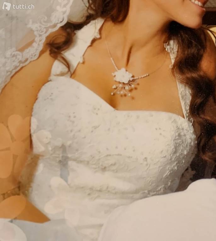 ivory mit schleier 3m inkl untereif fellmäntelchen und täschchen. Grösse 32/34 grösse hinten am rücken verstellbar wie bei bhs!! Gerne auch besichtigung und anprobe möglich! Das