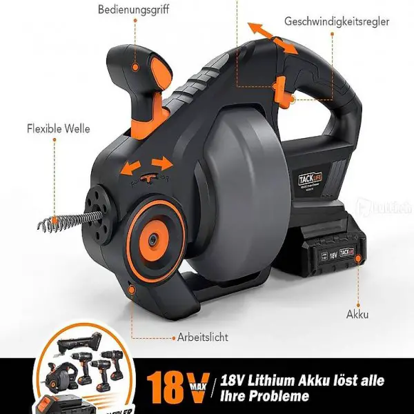 Für Abwasserleitungen von 19 bis 51mm im Durchmesser und mit einer 7m Spirale. Reinigt Verstopfungen in Rohrleitungen mit verschiedenen Winkeln und Wendungen; Segmentierte Konstruktion und Austausch der Schraube ermöglicht den einfach