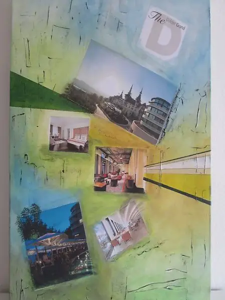 Ich biete hier ein viereckiges modernes Bild das mischt Fotos und Handgemalt
