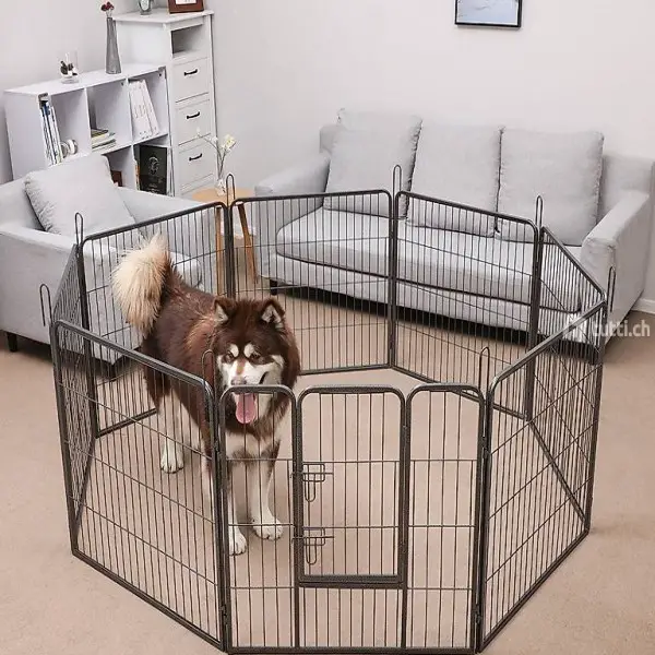Haustier individuell gestalten - Der Welpenauslauf aus 8 Elementen je 80x80 cm (B x H) lässt sich flexibel miteinander kombinieren, damit kann man ein grosses Gehege bekommen