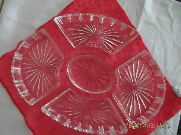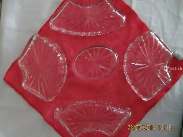 Silberplatte gepunzt mit EPNS und 5 verschiedene Formen von Glasschalen , die sind aus