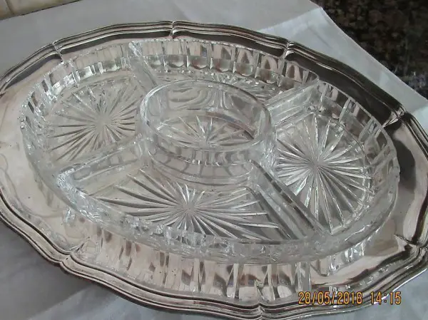 Platte, Buffetgeschirr, Silber und Kristalleinsätze,