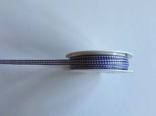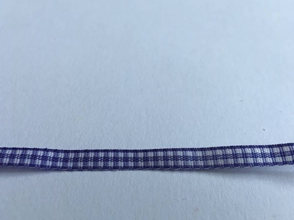 10m Spule Karo Band 5mm. mit schöner und feiner Webkante flieder-weiss.