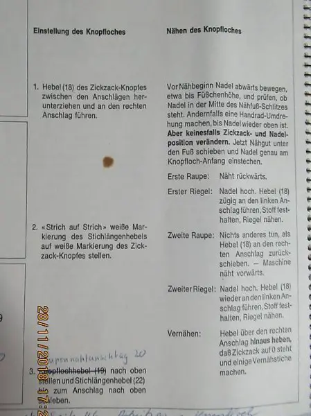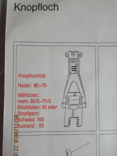 Nähfuss, zur Bernina Nähmaschine, für Knopfloch
