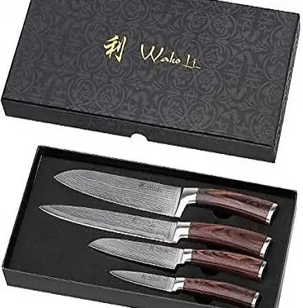 HÖCHSTE QUALITÄT: 4 hochwertigste, extra scharfe Profimesser mit Japanischen Damaszener Klingen und Pakkaholz-Griffen, Klingehärtegrad: 60±2HRC; aus 67 Stahllagen gefertigt, jede Klinge bietet mit hochlegiertem, eisgehärtetem Kohlenstoffstahl optimale Schärfe