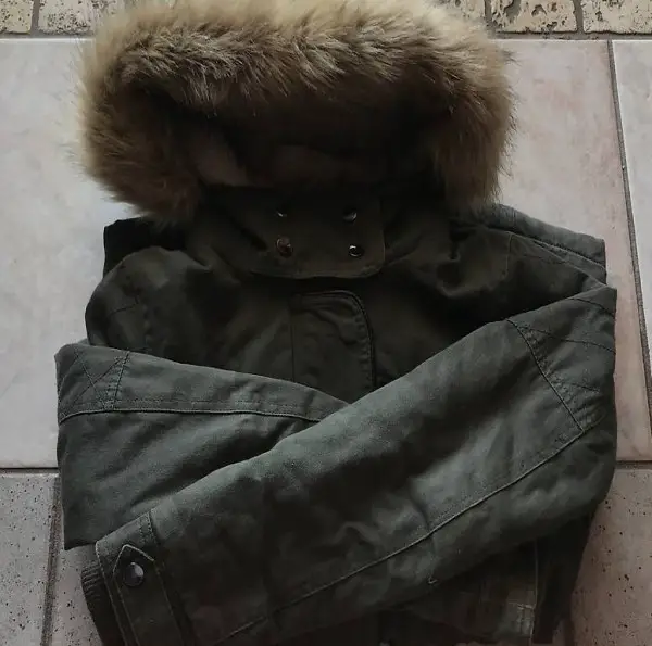 Vendo un cappotto modello parka con pelliccia, di colore verde militare, di taglia dai 13 ai 15 anni.