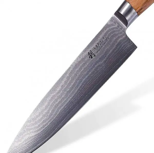 sehr hochwertiges sehr scharfes Profi Chefmesser mit Damastklinge und Olivenholzgriff,