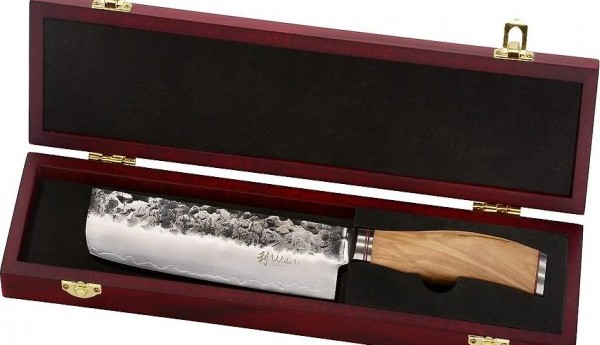Hammerschlag - sehr hochwertiges sehr scharfes Profi Nakirimesser mit Damastklinge und Olivenholzgriff,