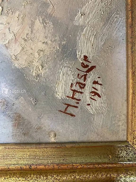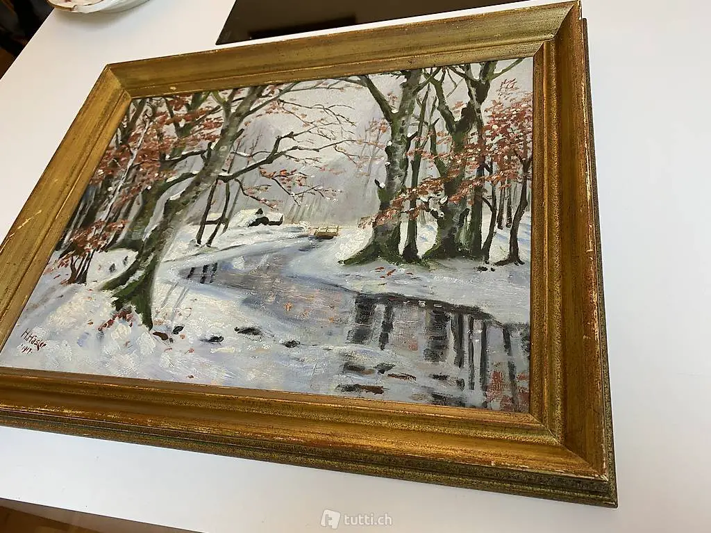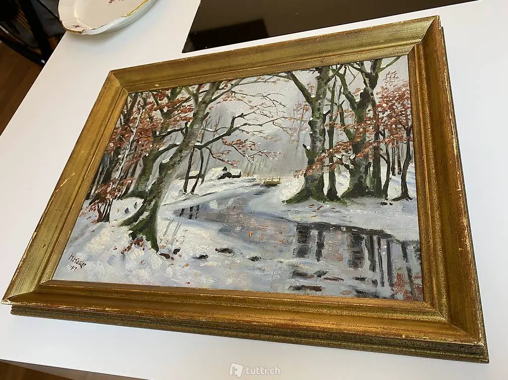 Schöne Winterlandschaft von H.Hasler datiert 1917, Oel auf Leinwand gerahmt.