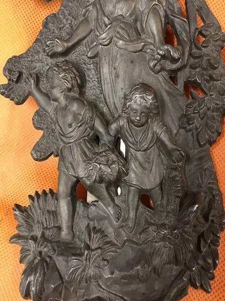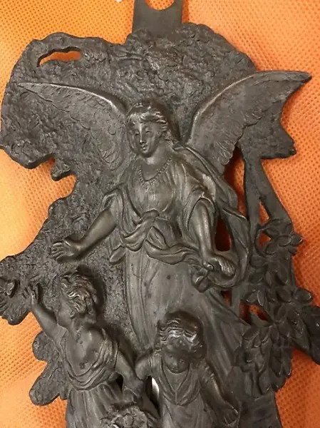 Jugendstil Metallbild Schutzengel mit 2 Kinder 22cm h x 13cm