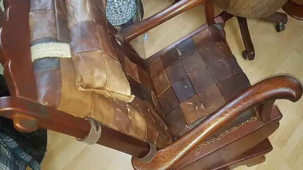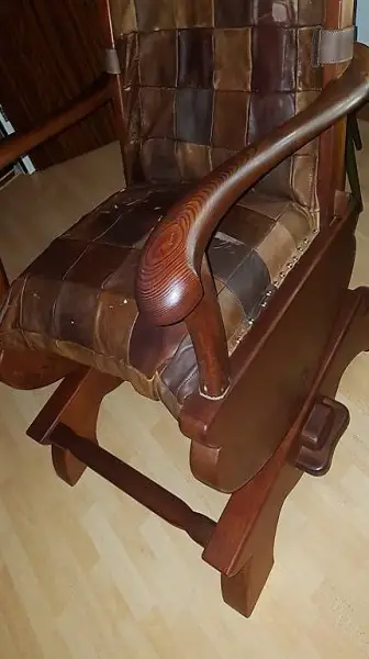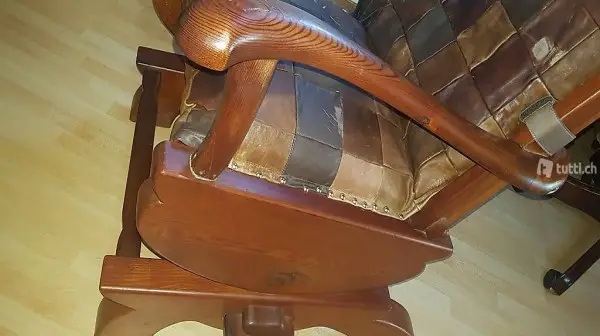 Special antiker Schauckelstuhl aus Holz mit Leder bezogen