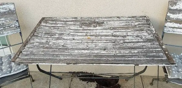 Der Tisch hat zwei Holzlisten wo ein bisschen aufheben siehe Fotos.