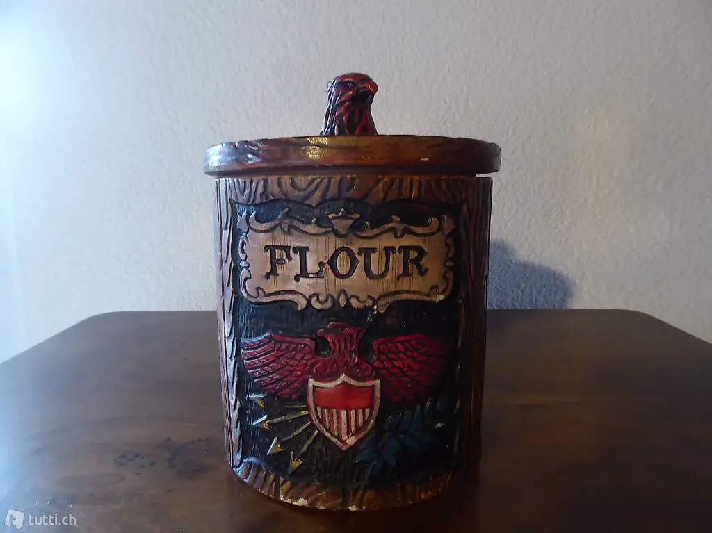 Vorratsdose Vorratstop Keramik mit Deckel aus USA antik