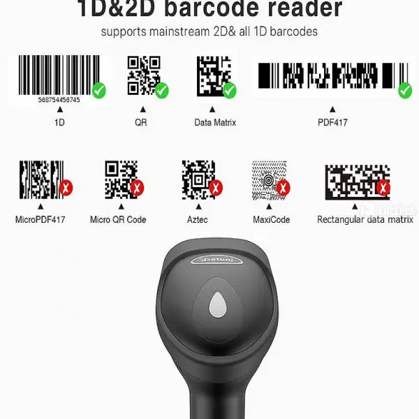1D & 2D Barcode- und Datamatrix-Scanner: Der Scanner vermag 1D- und 2D-Codes schnell und zuverlässig zu lesen, inklusive QR-Codes, Datamatrix, PDF417, Strichcode wie UPC/ EAN, Code 128 etc.