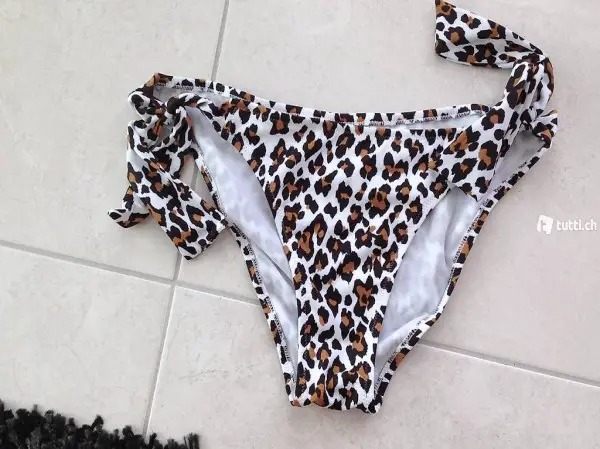 Bikini Badehose Schwimmanzug weiss/Leopard gemustert Gr. S/M