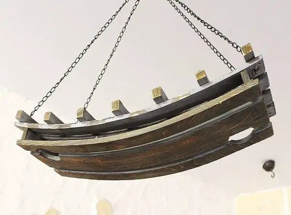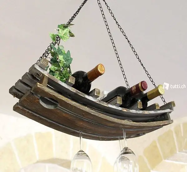 Holzregal befestigt, die separat an der Decke montiert werden können.