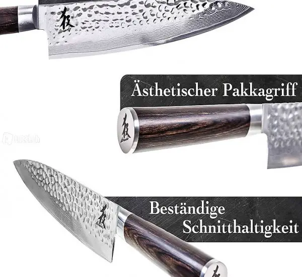 aus hochwertigen japanischen Damaszener Stahl, um Problemlos alle Arten von Lebensmittel einfach zu schneiden, Dank bester Qualität