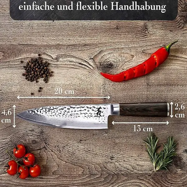 Holzgriff sorgt für eine exzellente balance zwischen Griff und Premium-Klinge - Dies ist die perfekte Voraussetzung für ein angenehmes Schnittgefühl.