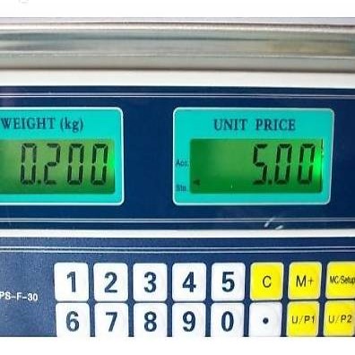 Digitale Tischwaage mit Preisberechnungs-Funktion & Preisspeicherung. Wiegt äusserst präzise bis 30kg in 1g-Schritten.