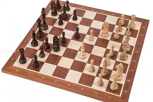 Schachbrett ist aus Mahagoni / Bergahornholz hergestellt (Intarsia)