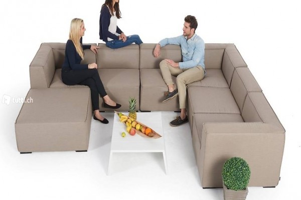 Beau mobilier de jardin en tissu sunbrella. Meubles résistant aux intempéries.