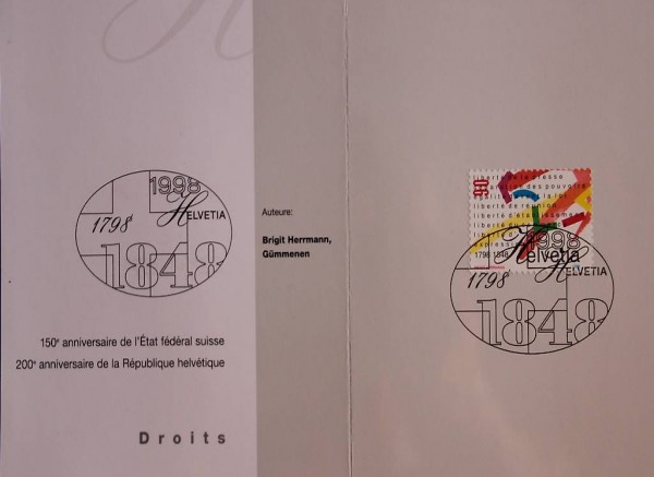 Angeboten wird ein PTT Sonderdruck zu "150 Jahre Bundesstaat / 200 Jahre Helvetische Republik.