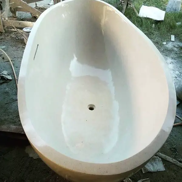 Diese Wanne wird von Hand aus Terrazzo Stein in Bali gefertigt