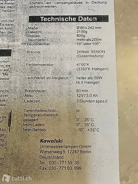 Technische Daten: siehe Foto 5.