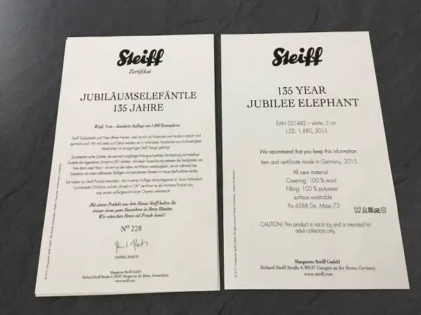 Steiff Jubiläumselefäntle 135 Jahre aus Sammlung mit Zertifikat ! Kann abgeholt oder per Post