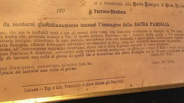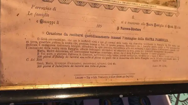 Certificato Consacrazione famiglie cristiane alla sacra fam.