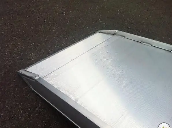 Im Lieferumfang ist eine Aluzunge, welche in den Schlitz am oberen Ende eingesteckt wird, enthalten. Diese wird zwischen Boden und Bordwand arretiert. Seitlich befindet sich je einen Schutzrand und eine feine gerillte Oberfläche als Antirutschbelag. Ideal für Rollmaterial mit kleinen Rädern.