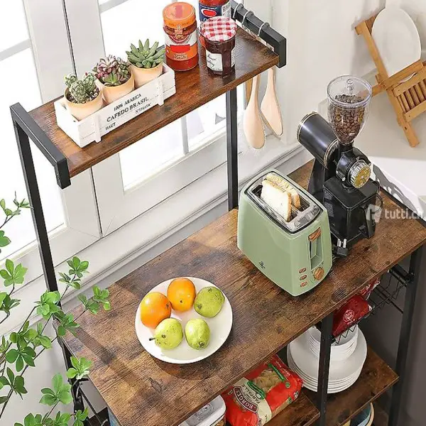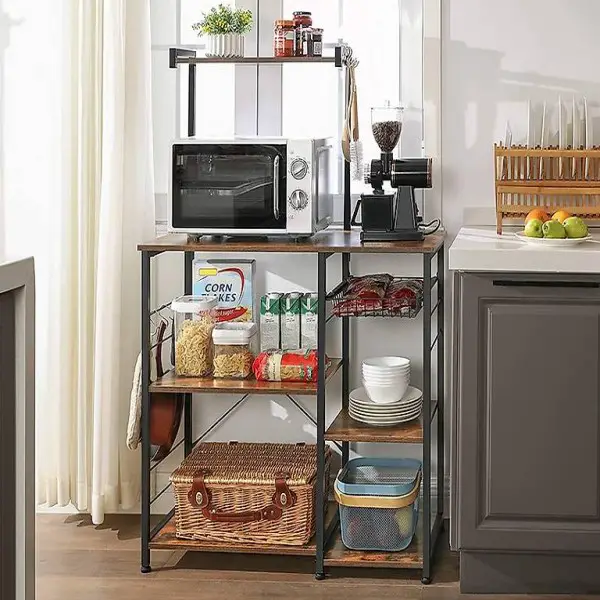 Bäckerregal mit 6 S-Haken und Regalablagen, Mikrowellenregal,