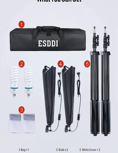 2x85 W Energiesparlampen- Mit hochwertigem Material können die Lampen bis zu 80% Energie sparen und halten etwa 8000 Stunden. Sie können es verwenden, um das Aufwachsen von einem Baby zu einem Erwachsenen aufzuzeichnen. Die 5500K-Farbtemperaturlampen erzeugen reinweisses Tageslicht und bieten eine natürliche fotografische Umgebung, die Ihren ursprünglichen Charme maximiert. (PS: Sie können einen Ersatz von uns erhalten, wenn die Glühbirne während des Transports defekt ist.)